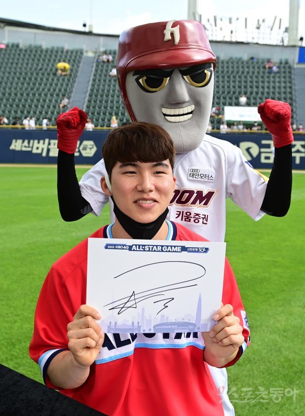 16일 서울 잠실야구장에서 열린 ‘2022 KBO 올스타전’ 드림 올스타와 나눔 올스타의 경기에 앞서 키움 김혜성이 팬 사인회에서 포즈를 취하고 있다.