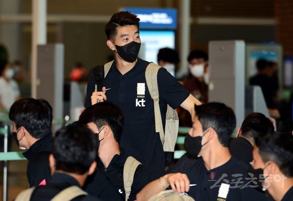 2022 EAFF E-1 챔피언십에 출전하는 한국 축구국가대표팀이 17일 인천국제공항을 통해 일본으로 출국했다. 축구대표팀 조현우가 출국에 앞서 동료들과 인사를 나누고 있다.