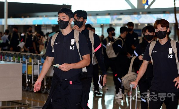 2022 EAFF E-1 챔피언십에 출전하는 한국 축구국가대표팀이 17일 인천국제공항을 통해 일본으로 출국했다. 축구대표팀 조규성이 출국장으로 향하고 있다.