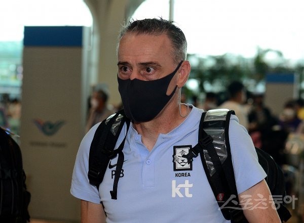 2022 EAFF E-1 챔피언십에 출전하는 한국 축구국가대표팀이 17일 인천국제공항을 통해 일본으로 출국했다. 축구대표팀 벤투 감독이 출국장으로 향하고 있다. 인천국제공항 | 김민성 기자 marineboy@donga.com