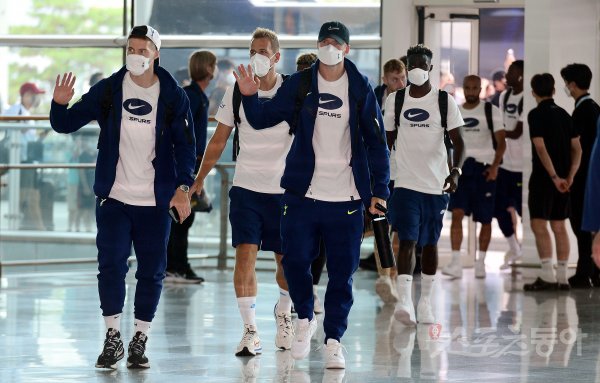 프리시즌 한국 투어를 마친 잉글랜드 프로축구(EPL) 토트넘이 17일 인천국제공항을 통해 영국으로 출국했다. 토트넘 선수들이 출국에 앞서 팬들에게 인사하고 있다.