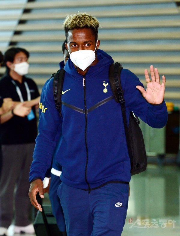 프리시즌 한국 투어를 마친 잉글랜드 프로축구(EPL) 토트넘이 17일 인천국제공항을 통해 영국으로 출국했다. 토트넘 세세뇽이 출국에 앞서 팬들에게 인사하고 있다.