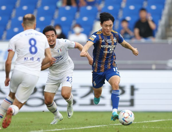 울산은 16일 울산문수축구경기장에서 열린 수원 삼성전에서 2-1로 승리했다. 14승5무3패, 승점 47을 쌓아 선두를 질주하며 2005년 이후 첫 K리그 우승을 향해 나아갔다. 결과와 내용을 다 잡은 한 판이었다. 이규성(후반 6분)과 엄원상(후반 18분)의 득점뿐 아니라 공격 전개 과정이 매끄러웠고, 수비에서도 안정감을 줬다. 경기를 마친 뒤 홍명보 울산 감독은 “경기력이 만족스럽다. 그동안 부족한 부분들이 많이 개선됐다”고 평가했다.