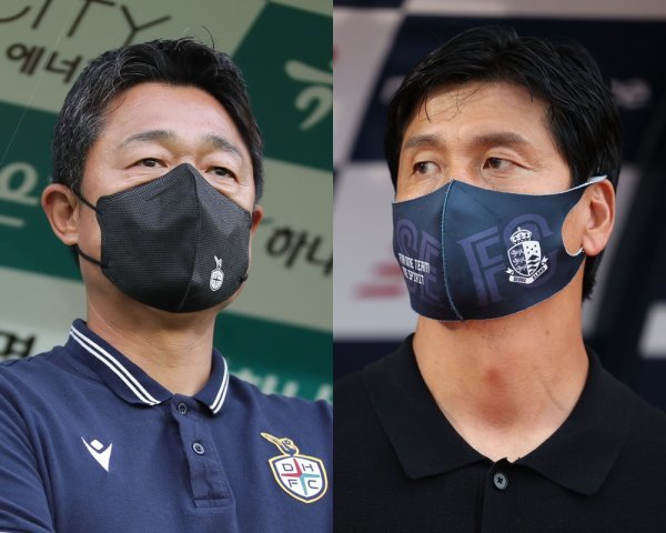 대전 이민성 감독(왼쪽), 서울 이랜드 정정용 감독. 사진제공 | 한국프로축구연맹