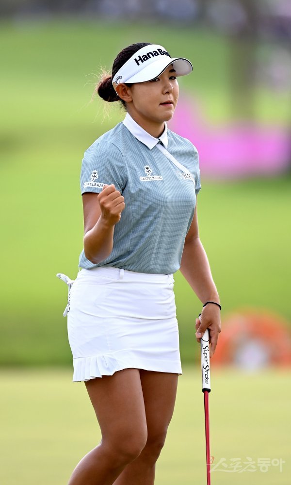 17일 경기도 양주 레이크우드CC에서 열린 KLPGA투어 ‘에버콜라겐 퀸즈 크라운 2022’ 최종라운드에서 박보겸이 버디 퍼팅에 성공한 후 주먹을 쥐고 있다.