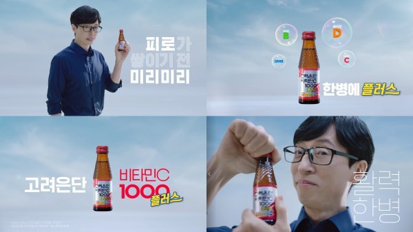 여름 시즌을 맞아 유재석이 시원한 배경과 함께 ‘비타민C 1000 플러스’를 소개하며 지친 일상에 한 병으로 활력을 충전할 수 있다는 메시지를 강조한다. ‘비타민C 1000 플러스’는 기존 ‘마시는 고려은단 비타민C’에 타우린과 비타민B군, 비타민D 등 영양 성분을 업그레이드한 음료다.