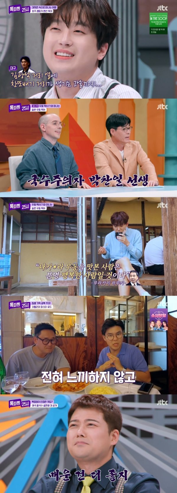 첫 번째로 일본 톡파원은 무라카미 하루키의 우동 맛 기행 테마를 다룬 책을 들고 우동 투어에 최적화된 우동 택시에 탑승해 가가와현 우동 맛집들을 소개했다. 가다랑어포와 다시마육수로 만든 베이직한 우동부터 냉우동, MZ세대에게 인기인 ‘우동계의 카르보나라’ 솥버터우동까지 다양한 우동을 맛봐 부러움을 샀다.