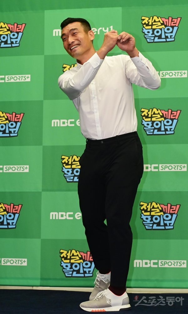 전 축구선수 조원희가 19일 서울 마포구 상암동 스탠포드호텔 서울에서 열린 MBC에브리원 ‘전설끼리 홀인원’ 제작발표회에서 포즈를 취하고 있다.