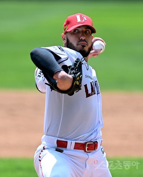 새 외국인투수 모리만도는 19일 인천SSG랜더스필드에서 열린 파주 챌린저스와 연습경기에 선발등판해 투구수 60개로 5이닝 4안타 무4사구 7삼진 1실점을 기록했다. 구종은 직구와 슬라이더, 커브, 포크볼을 섞었다. 직구는 구단 트랙맨 데이터 기준으로 최고 시속 147.3㎞가 찍혔다.