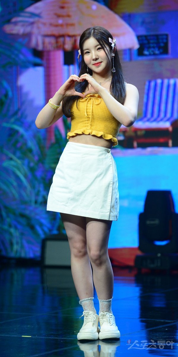 걸그룹 아일리원(ILY:1) 나유가 19일 서울 강남구 청담동 일지아트홀에서 진행된 컴백 싱글 ‘케세라세라’(Que sera sera) ‘ 발매 쇼케이스에서 포토타임을 갖고 있다.
