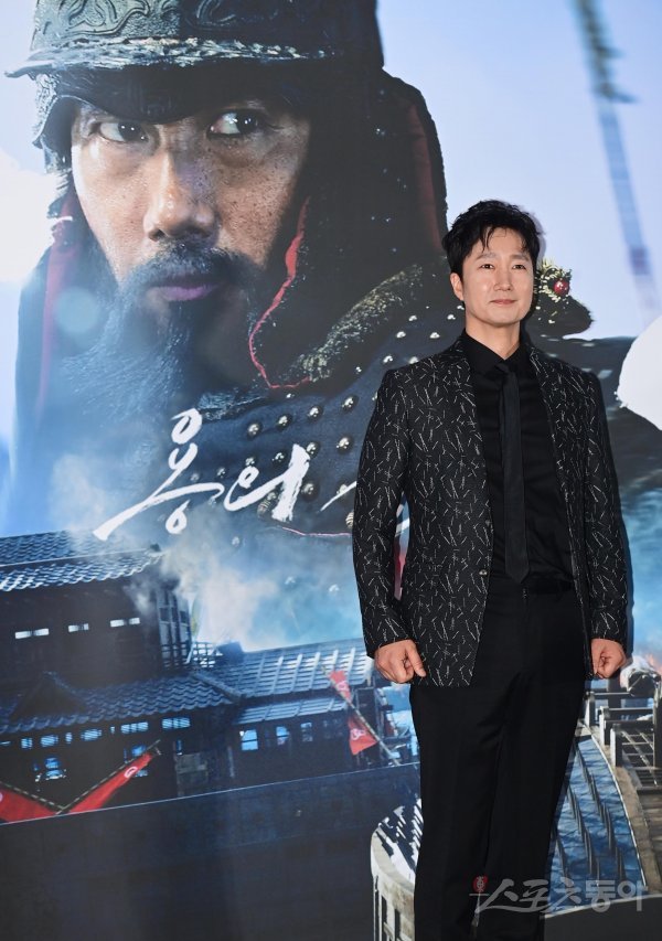 배우 박해일이 19일 서울 송파구 신청동 롯데시네마 월드타워점에서 열린 영화 ‘한산: 용의 출현’ 언론시사회에서 포즈를 취하고 있다.