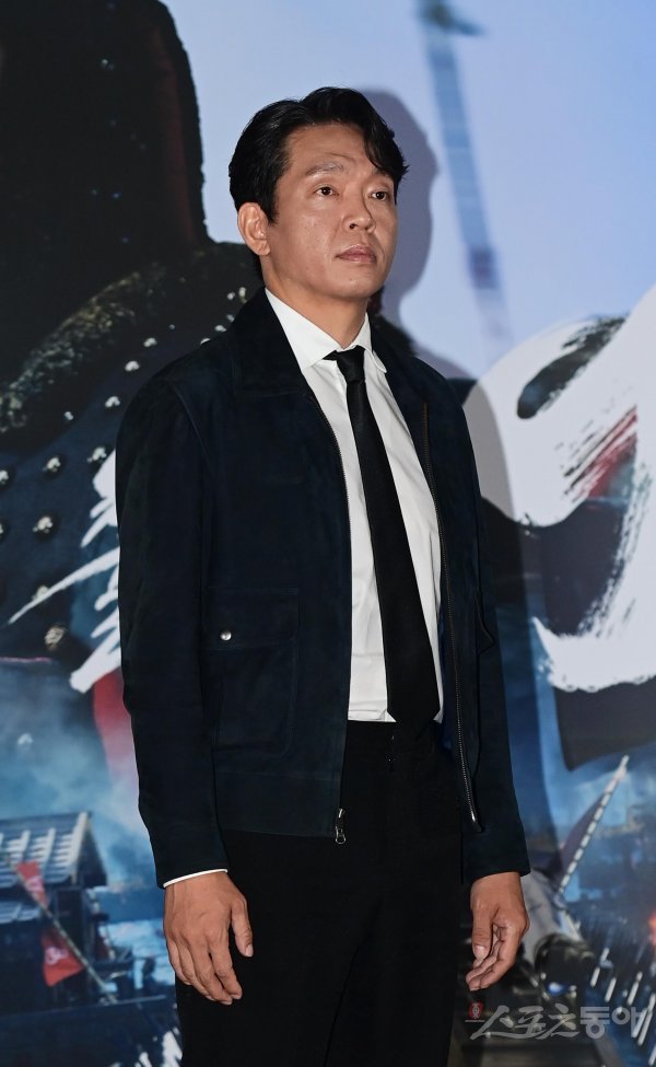 배우 박지환이 19일 서울 송파구 신천동 롯데시네마 월드타워점에서 열린 영화 ‘한산: 용의 출현’ 언론시사회에서 포즈를 취하고 있다.