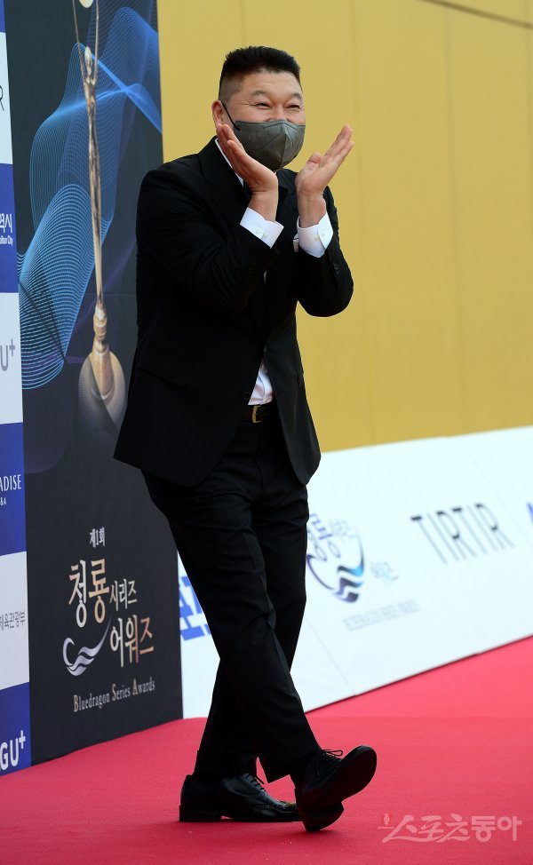 19일 인천 영종도 파라다이스시티에서 열린 ‘제 1회 청룡시리즈어워즈’에 참석한 강호동이 카메라를 향해 포즈를 취하고 있다.