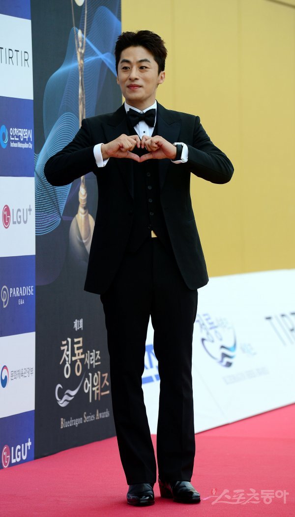19일 인천 영종도 파라다이스시티에서 열린 ‘제 1회 청룡시리즈어워즈’에 참석한 구교환이 카메라를 향해 포즈를 취하고 있다.