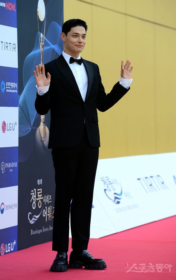 19일 인천 영종도 파라다이스시티에서 열린 ‘제 1회 청룡시리즈어워즈’에 참석한 정혁이 카메라를 향해 포즈를 취하고 있다.