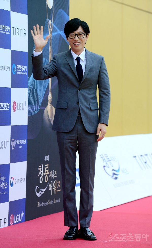 19일 인천 영종도 파라다이스시티에서 열린 ‘제 1회 청룡시리즈어워즈’에 참석한 유재석이 카메라를 향해 포즈를 취하고 있다.