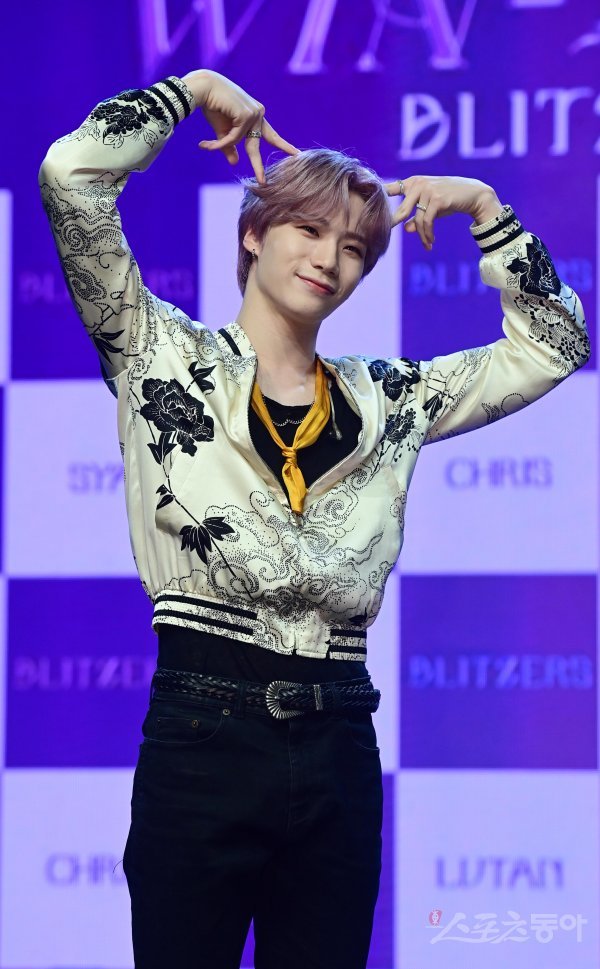 그룹 블리처스 크리스가 20일 서울 강남구 청담동 일지아트홀에서 열린 세 번째 미니앨범 ‘WIN-DOW(윈-도우)‘ 발매 기념 프레스 쇼케이스에서 포즈를 취하고 있다.