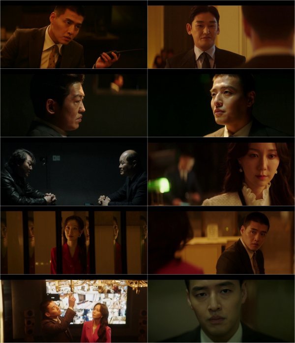 그 사이 목진형(김상호 분)은 김요한의 다음 타깃이 자신임을 직감했다. 그가 떠올린 해결법은 양준(허동원 분), 양화(정만식 분)을 다시 끌어올리는 쪽이었다. 몰래 대검찰청으로 들어가 양화를 만난 목진형은 “서초동에 윤병욱만 있는 거 아닙니다”라며 의미심장한 여지를 흘렸다. 여기에 그가 앞서 VIP실을 제외한 골드맨카지노의 모든 곳에 설치해둔 도청기에도 새로운 먹잇감이 걸려들었다. 김요한과 오수연이 나눈 밀담이었다. 김요한이 윤병욱과의 딜을 마치고 돌아오자, 오수연은 눈앞에 성큼 다가온 원수를 없애버릴 생각으로 들떠있었다.