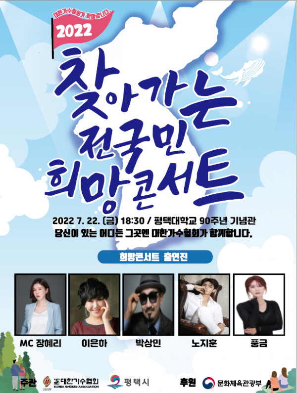 [2022 찾아가는 전국민 희망콘서트] 8번째 무대가 22일(금) 오후 6시 30분 경기도 평택시 평택대학교 90주년 기념관에서 열린다.