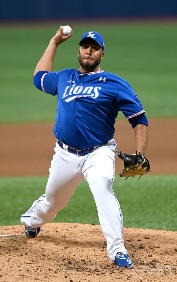 22일 고척스카돔에서 ‘2022 신한은행 MY CAR KBO리그’ 삼성 라이온즈와 키움 히어로즈 경기가 열렸다. 5회말 교체 등판한 삼성 수아레즈가 역투하고 있다.