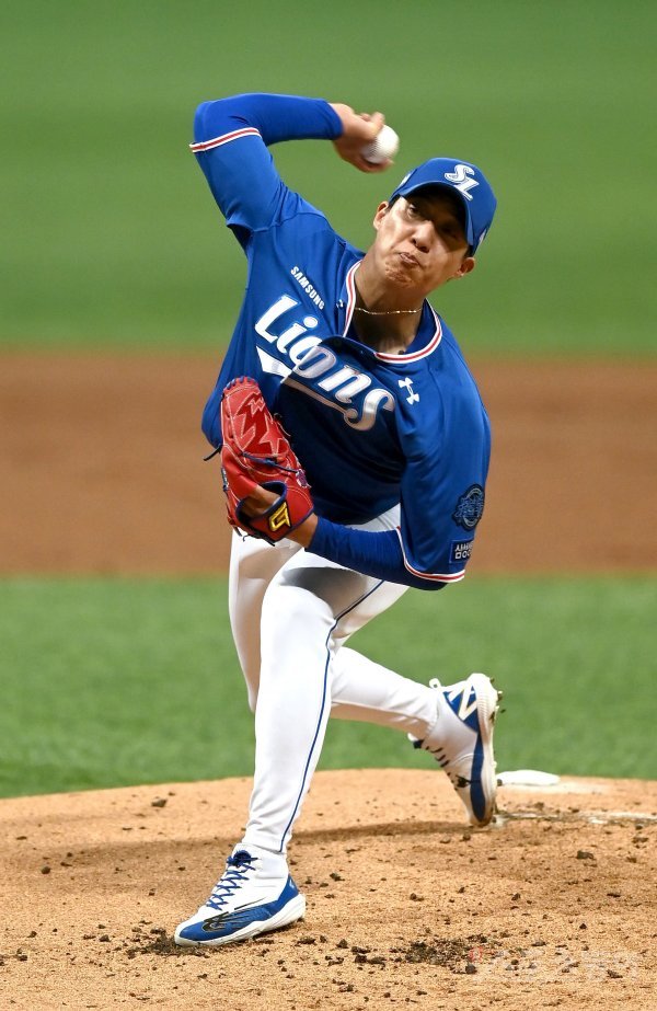 22일 고척스카돔에서 ‘2022 신한은행 MY CAR KBO리그’ 삼성 라이온즈와 키움 히어로즈 경기가 열렸다. 선발 투수로 등판한 삼성 원태인이 역투하고 있다.