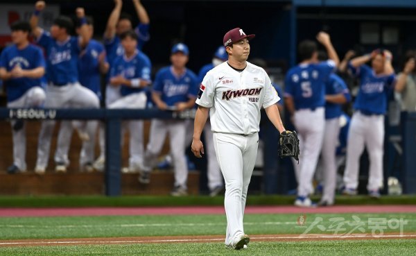 22일 고척스카돔에서 ‘2022 신한은행 MY CAR KBO리그’ 삼성 라이온즈와 키움 히어로즈 경기가 열렸다. 9회초 1사 2루 키움 문성현이 역전타를 허용한 후 아쉬워하고 있다.