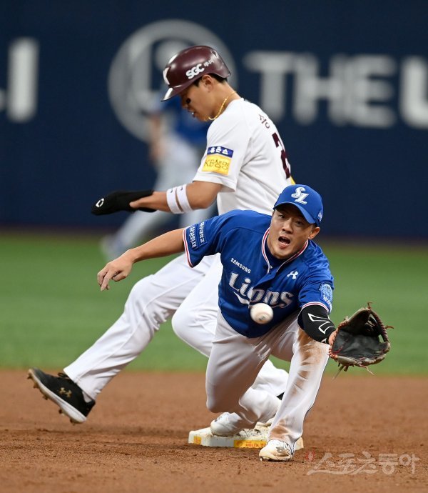23일 고척스카돔에서 ‘2022 신한은행 MY CAR KBO리그’ 삼성 라이온즈와 키움 히어로즈 경기가 열렸다. 3회말 1사 1,2루 키움 좌전 안타 1루주자 송성문이 2루에서 세이프 되고 있다.
