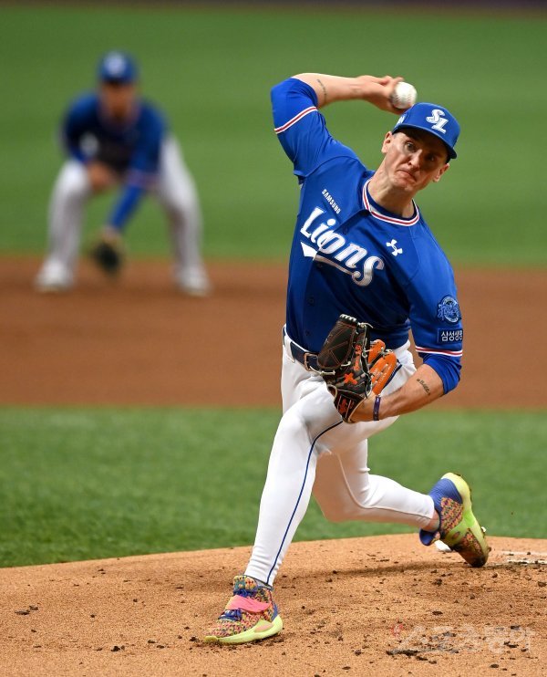 23일 고척스카돔에서 ‘2022 신한은행 MY CAR KBO리그’ 삼성 라이온즈와 키움 히어로즈 경기가 열렸다. 선발 투수로 등판한 삼성 뷰캐넌이 역투하고 있다.