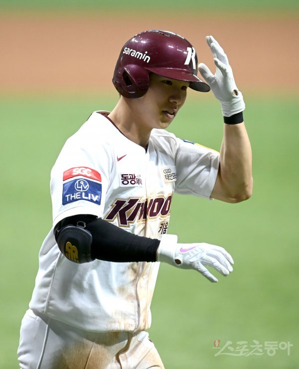 23일 고척스카돔에서 ‘2022 신한은행 MY CAR KBO리그’ 삼성 라이온즈와 키움 히어로즈 경기가 열렸다. 7회말 무사 키움 김혜성이 우월 솔로 홈런을 날리고 그라운드를 돌아 홈인해 하이파이브 하고 있다.