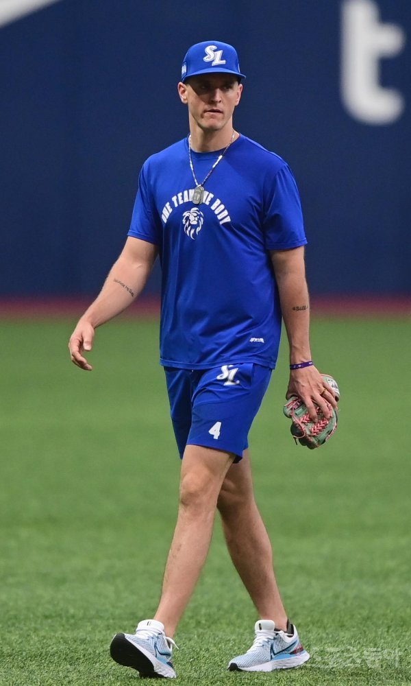 24일 서울 고척스카이돔에서 열린 ‘2022 신한은행 SOL KBO리그’ 키움 히어로즈와 삼성 라이온즈의 경기에 앞서 삼성 뷰캐넌이 더그아웃으로 향하고 있다.