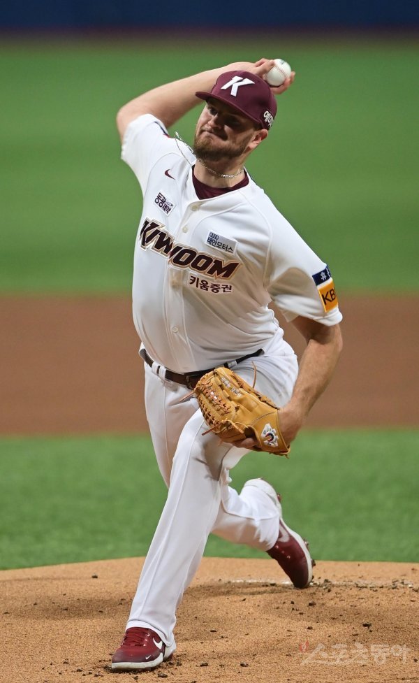 24일 서울 고척스카이돔에서 열린 ‘2022 신한은행 SOL KBO리그’ 키움 히어로즈와 삼성 라이온즈의 경기에서 선발 투수로 마운드에 오른 키움 애플러가 역투하고 있다.