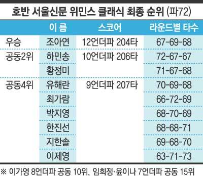 조아연이 24일 경기 이천시 H1 클럽 마운틴·레이크코스(파72)에서 열린 한국여자프로골프(KLPGA) 2022시즌 상반기 마지막 대회 ‘호반 서울신문 위민스 클래식’(총상금 10억 원) 초대 챔프의 영광을 안았다. 2라운드까지 단독 선두 이제영에 2타 뒤진 공동 2위였던 조아연은 3라운드에서 버디 6개와 보기 2개를 묶어 4언더파 68타를 쳤다. 합계 12언더파 204타를 기록하며 공동 2위 하민송(26), 황정미(23¤이상 10언더파)를 2타 차로 따돌리고 우승상금 1억 8000만 원을 획득했다.