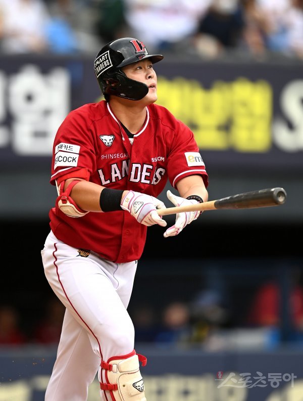 24일 서울 잠실야구장에서 ‘2022 신한은행 MY CAR KBO리그’ SSG 랜더스와 두산 베어스 경기가 열렸다. 2회초 2사 SSG 전의산이 우월 솔로 홈런을 날리고 있다.