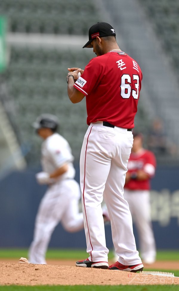 24일 서울 잠실야구장에서 ‘2022 신한은행 MY CAR KBO리그’ SSG 랜더스와 두산 베어스 경기가 열렸다. SSG 선발 폰트가 1회말 2사 1루 두산 김재환에게 우중월 투런 홈런을 허용하고 있다.