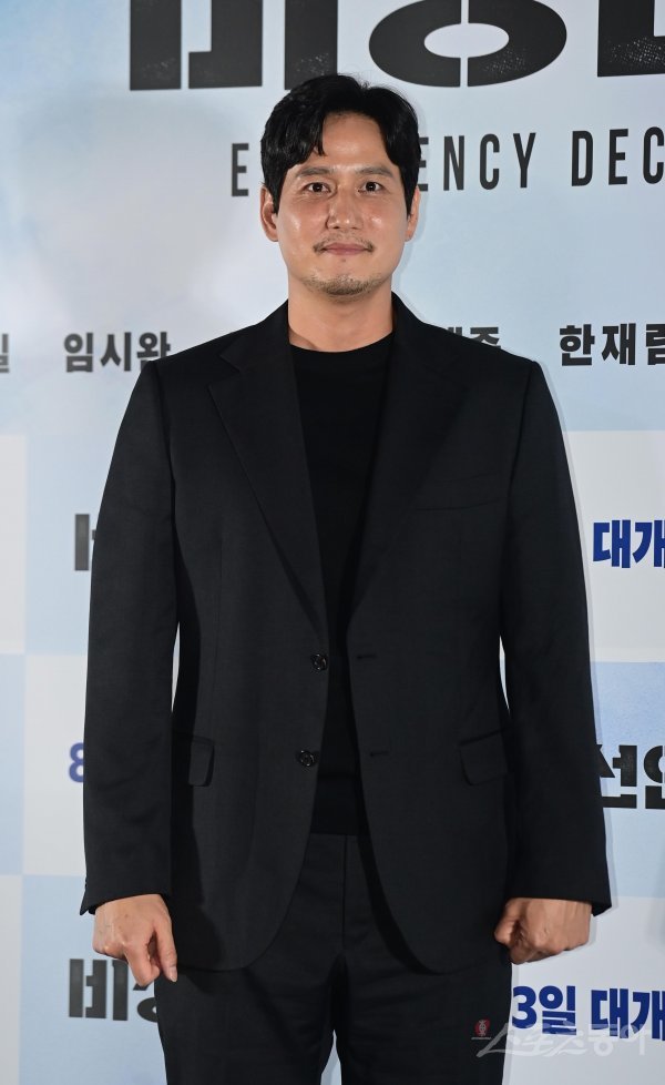 배우 박해준이 25일 서울 강남구 삼성동 메가박스 코엑스점에서 열린 영화 ‘비상선언’ 언론시사회에서 포즈를 취하고 있다.