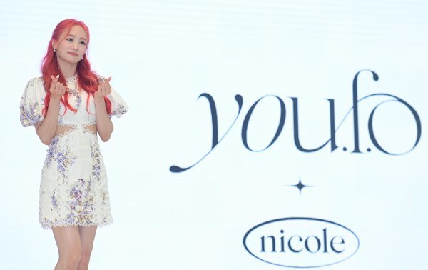 가수 니콜이 26일 서울 중구 장충동 크레스트72에서 열린 새 디지털 싱글 앨범 ‘YOU.F.O’ 발매 기념 기자간담회에서 포즈를 취하고 있다.