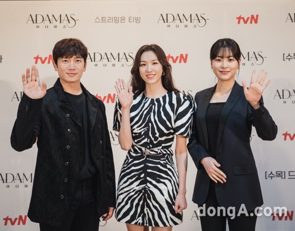 지성, 서지혜, 이수경이 26일 오후 진행된 tvN 새 수목 드라마 ‘아다마스’ 제작발표회에서 포즈를 취하고 있다.