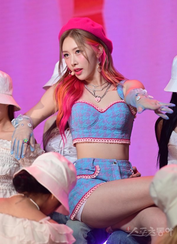 가수 헤즈(HEZZ·홍의진)가 26일 서울 강남구 청담동 일지아트홀에서 열린 새 싱글 앨범 ‘Churup!(츄릅)‘ 발매 기념 프레스 쇼케이스에서 동명의 타이틀곡 무대를 펼치고 있다.