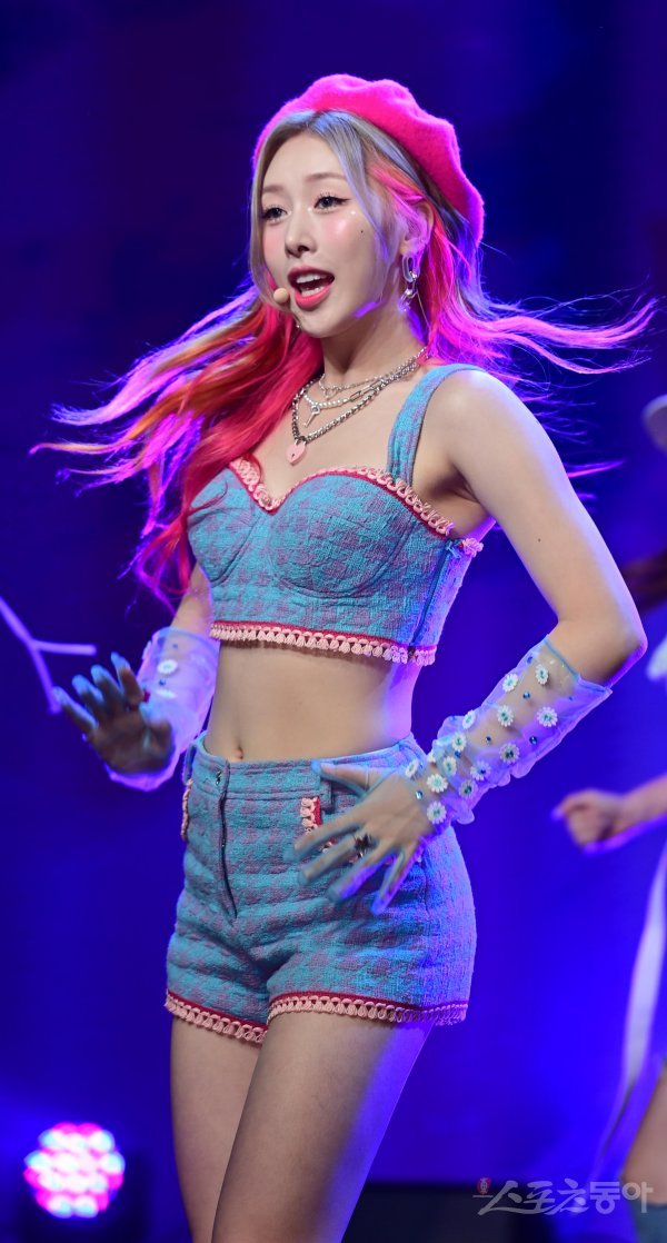 가수 헤즈(HEZZ·홍의진)가 26일 서울 강남구 청담동 일지아트홀에서 열린 새 싱글 앨범 ‘Churup!(츄릅)‘ 발매 기념 프레스 쇼케이스에서 동명의 타이틀곡 무대를 펼치고 있다.