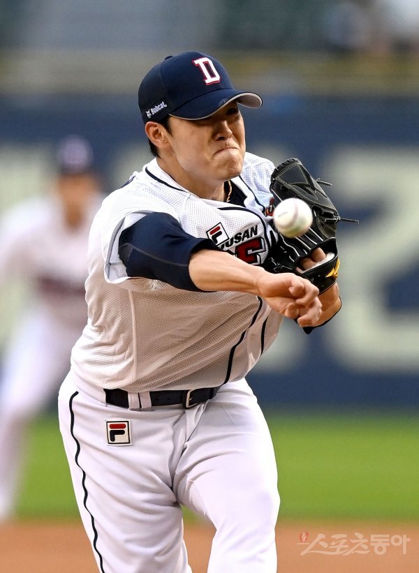 26일 서울 잠실야구장에서 ‘2022 신한은행 MY CAR KBO리그’ SSG 롯데 자이언츠와 두산 베어스 경기가 열렸다. 선발 투수로 등판한 두산 최원준이 역투하고 있다.