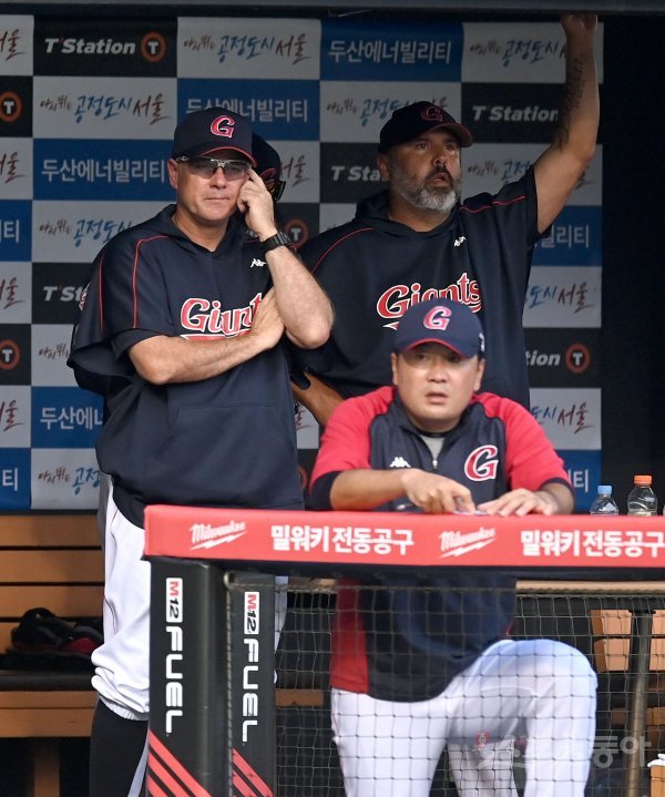 26일 서울 잠실야구장에서 ‘2022 신한은행 MY CAR KBO리그’ SSG 롯데 자이언츠와 두산 베어스 경기가 열렸다. 1회부터 실점을 허용하자 롯데 서튼 감독이 걱정스럽게 바라보고 있다.