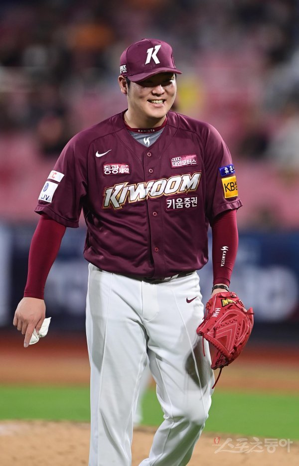 26일 경기도 수원KT위즈파크에서 열린 ‘2022 신한은행 SOL KBO리그’ KT 위즈와 키움 히어로즈의 경기에서 4회말 만루 위기를 막은 키움 한현희가 기뻐하고 있다.