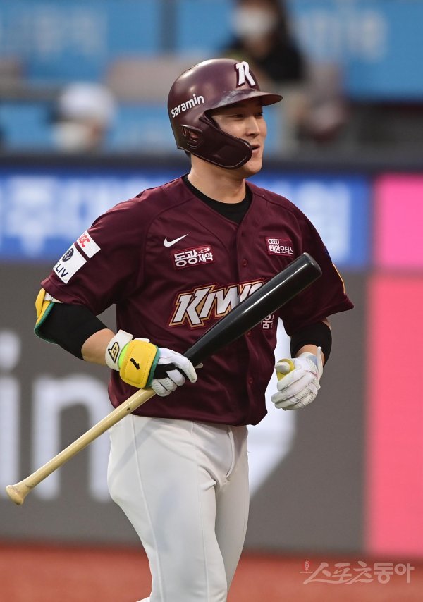 26일 경기도 수원KT위즈파크에서 열린 ‘2022 신한은행 SOL KBO리그’ KT 위즈와 키움 히어로즈의 경기에서 2회초 1사 키움 김준완이 우월 솔로 홈런을 친 후 기뻐하고 있다.