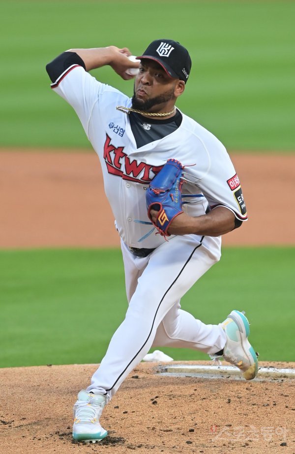 26일 경기도 수원KT위즈파크에서 열린 ‘2022 신한은행 SOL KBO리그’ KT 위즈와 키움 히어로즈의 경기에서 선발 투수로 마운드에 오른 KT 데스파이네가 역투하고 있다.
