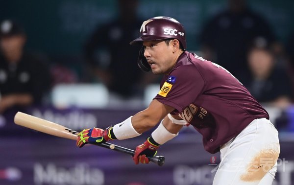 26일 경기도 수원KT위즈파크에서 열린 ‘2022 신한은행 SOL KBO리그’ KT 위즈와 키움 히어로즈의 경기에서 6회말 2사 2, 3루 키움 이용규가 1타점 좌전 적시타를 치고 있다.