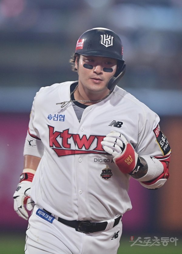 26일 경기도 수원KT위즈파크에서 열린 ‘2022 신한은행 SOL KBO리그’ KT 위즈와 키움 히어로즈의 경기에서 7회말 무사 KT 박병호가 동점 중월 솔로 홈런을 친 후 그라운드를 돌고 있다.