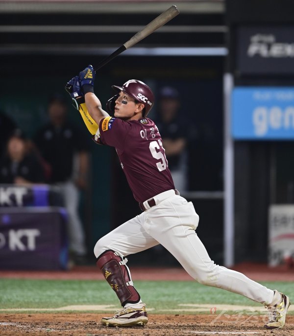 26일 경기도 수원KT위즈파크에서 열린 ‘2022 신한은행 SOL KBO리그’ KT 위즈와 키움 히어로즈의 경기에서 8회초 1사 만루 키움 이정후가 역전 3타점 3루타를 치고 있다.