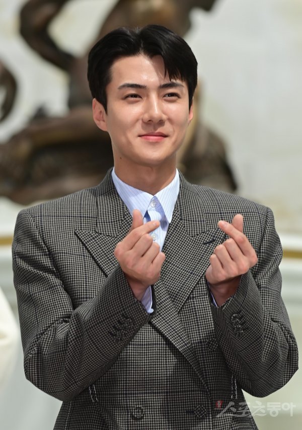 엑소 세훈이 27일 서울 성동구 성수동 한 컨셉 스토어에서 열린 한 패션 브랜드의 남성 2022 겨울 컬렉션 스토어 오픈 기념 포토월에서 포즈를 취하고 있다.