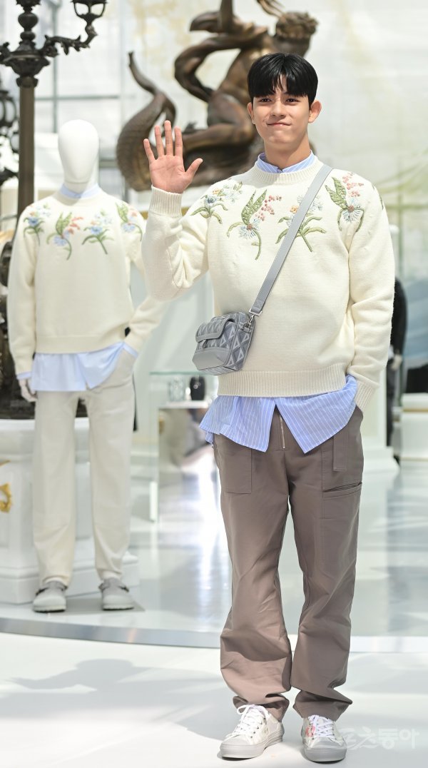 배우 로몬이 27일 서울 성동구 성수동 한 컨셉 스토어에서 열린 한 패션 브랜드의 남성 2022 겨울 컬렉션 스토어 오픈 기념 포토월에서 포즈를 취하고 있다.