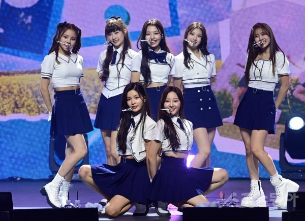 그룹 첫사랑(CSR)이 서울 용산구 한남동 블루스퀘어 마스터카드홀에서 열린 첫 번째 미니앨범 ‘Sequence : 7272’ 발매 기념 프레스 쇼케이스에서 타이틀곡 ‘첫사랑(Pop? Pop!)’ 무대를 펼치고 있다.